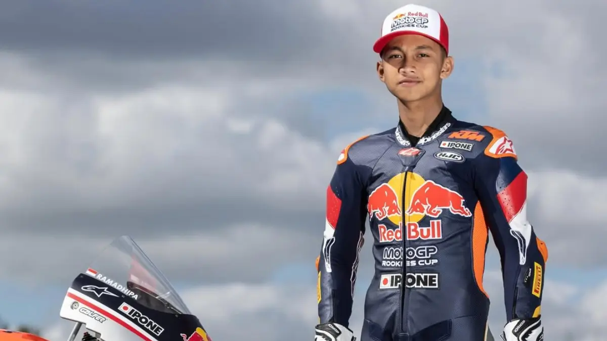 Pembalap muda Indonesia, Kiandra Ramadhipa, meraih kemenangan sensasional di Red Bull Rookies Cup 2026. Ia mengawali balapan dari posisi ke-17 sebelum merebut podium tertinggi.