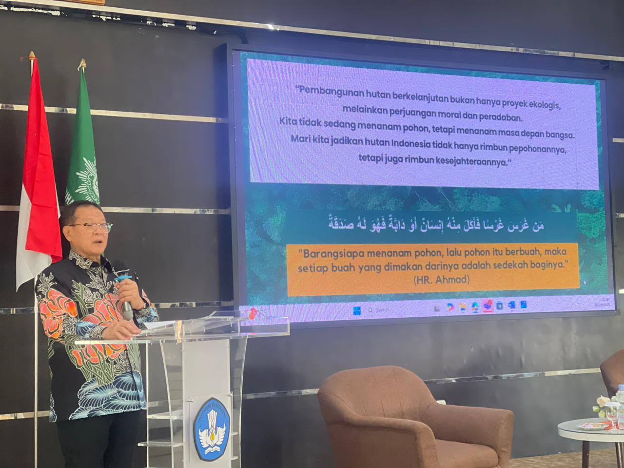 Menutup pidatonya, Prof Rokhmin mengingatkan bahwa membangun hutan berkelanjutan adalah investasi moral bangsa.