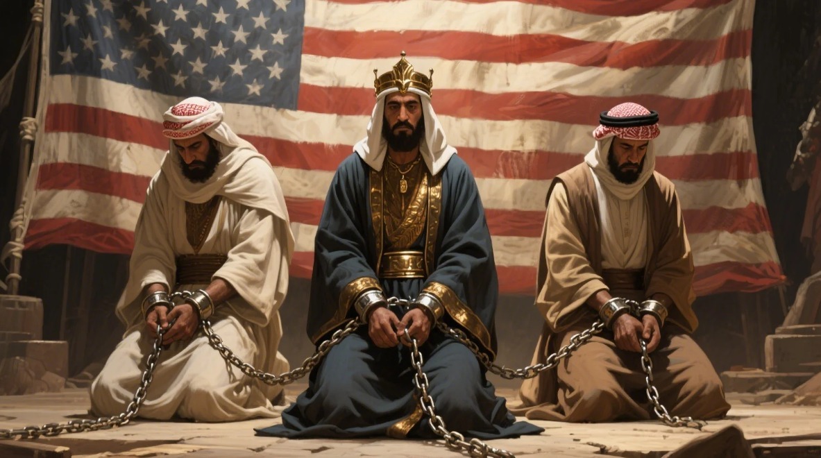 Monitorday.com – Dunia sedang terbakar. Bukan hanya karena ledakan rudal dan dentuman senjata, tapi karena nurani yang hilang dari dada para pemimpin Arab. Saat Iran berani membalas serangan Israel, negara-negara Arab justru bersembunyi di balik jubah mewah dan istana emas mereka. Para raja-raja ini tak ubahnya budak, yang tangan dan hati mereka di borgol, bersimpuh kepada bosnya di New York.