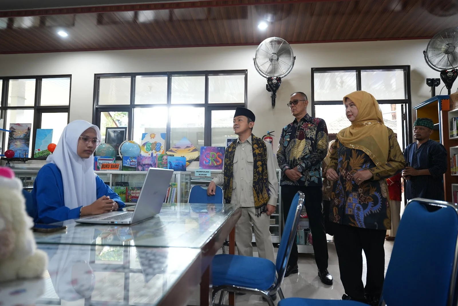 Selain meninjau fasilitas fisik, Wamendikdasmen juga melihat pemanfaatan perangkat pembelajaran digital berupa Interactive Flat Panel (IFP) atau Papan Interaktif Digital (PID) yang telah tersedia di ruang perpustakaan sekolah.